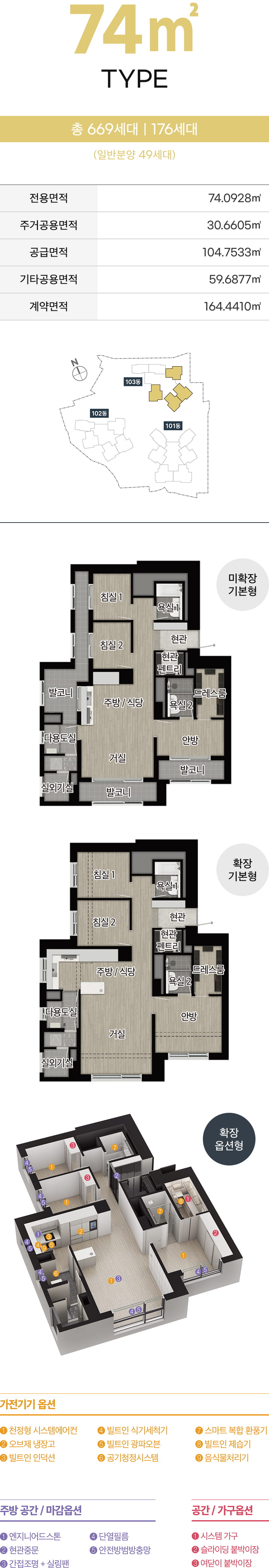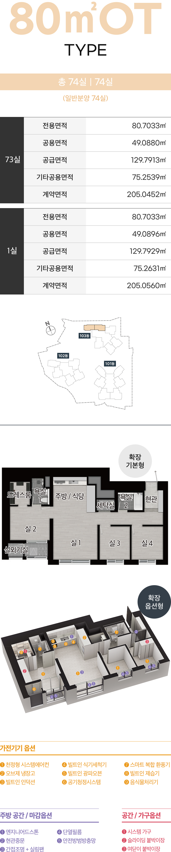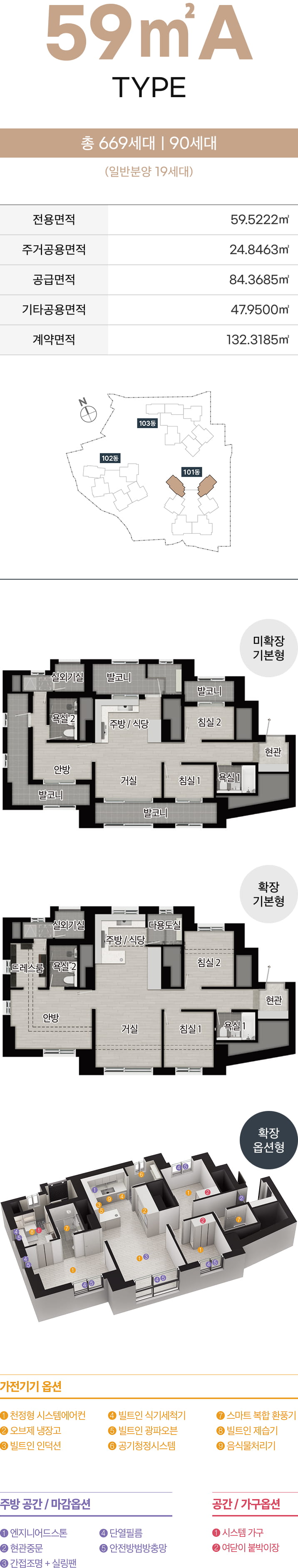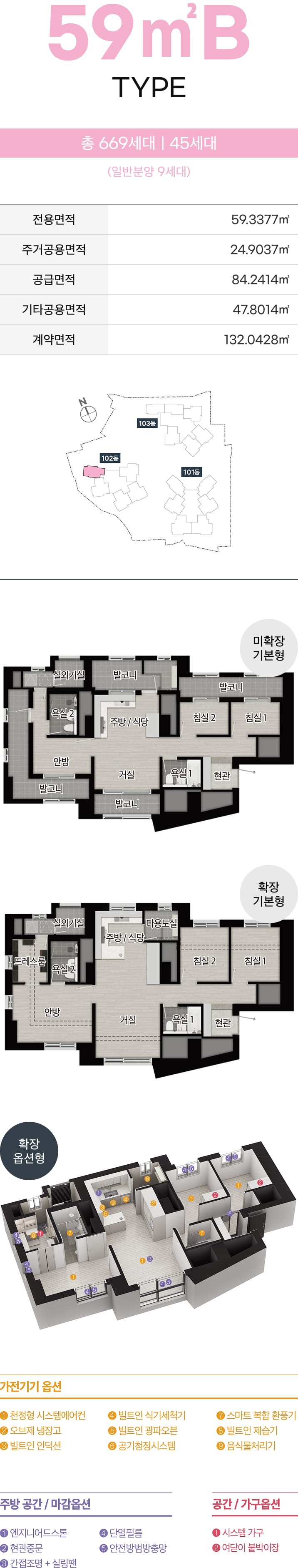 ※ 본 홈페이지상의 옵션 사항은 각 세대 타입 단위세대 마다 다를 수 있으니 자세한 사항은 견본주택에 직접 방문하셔서 상담 및 확인하시기 바랍니다.