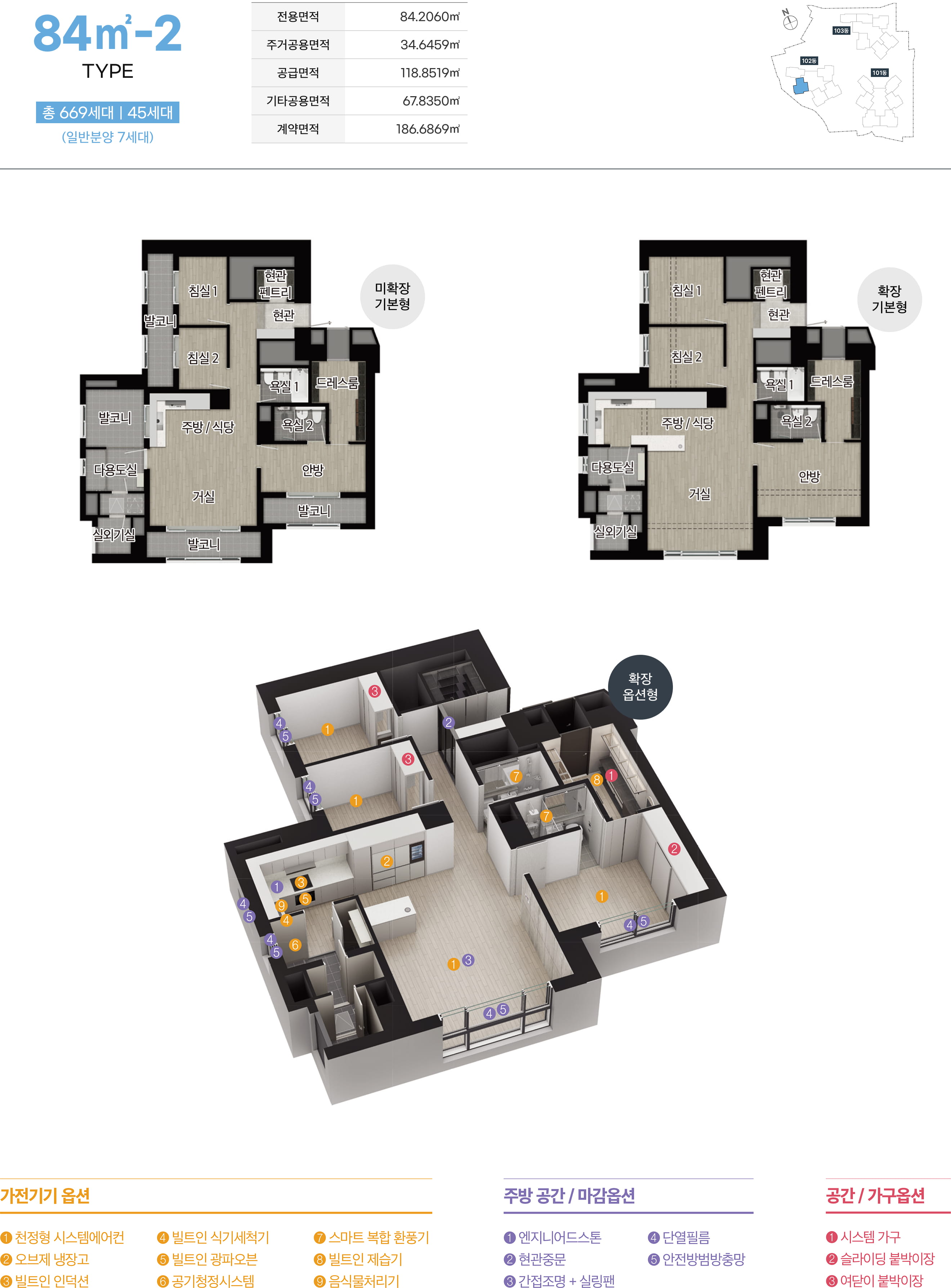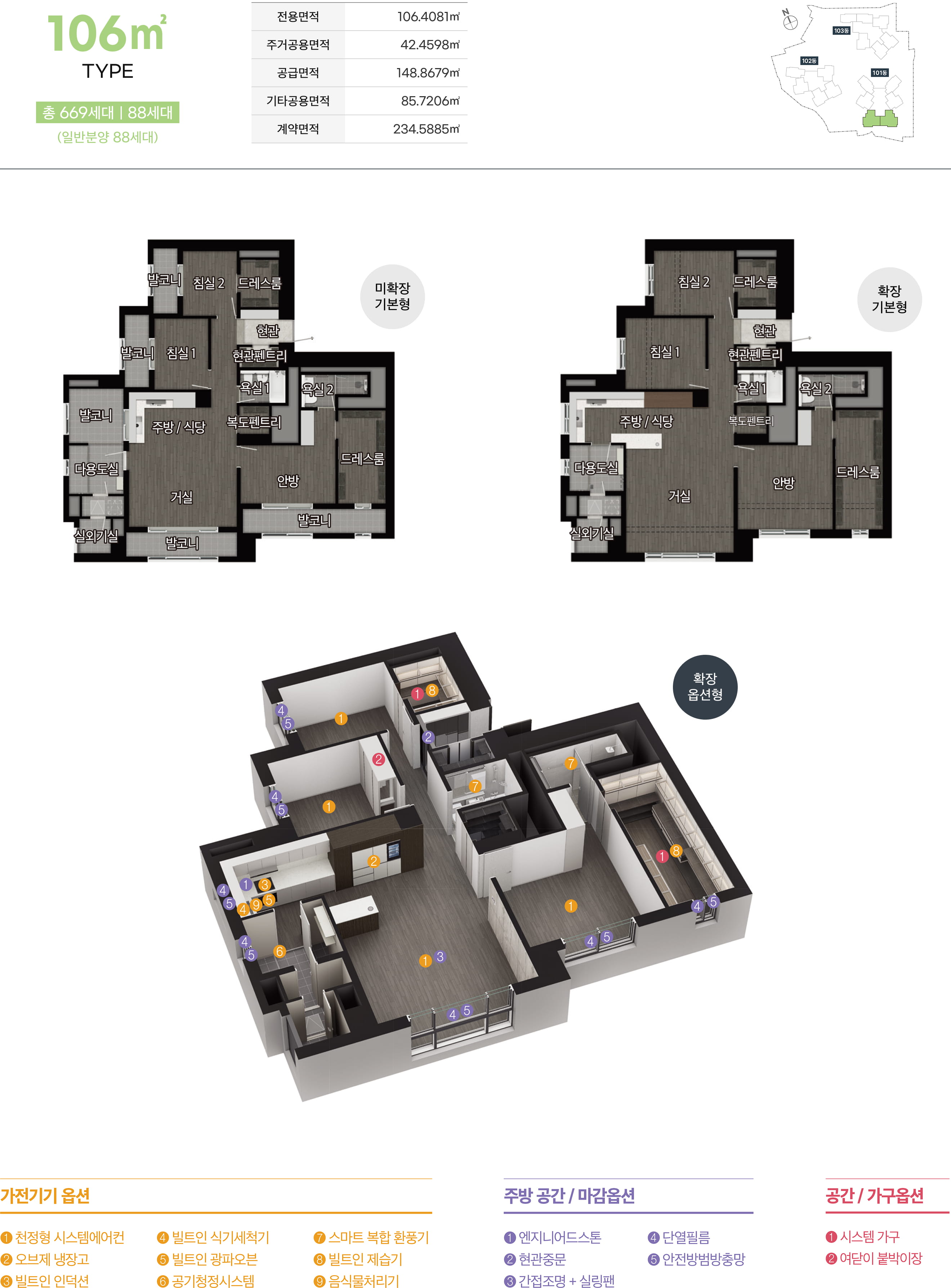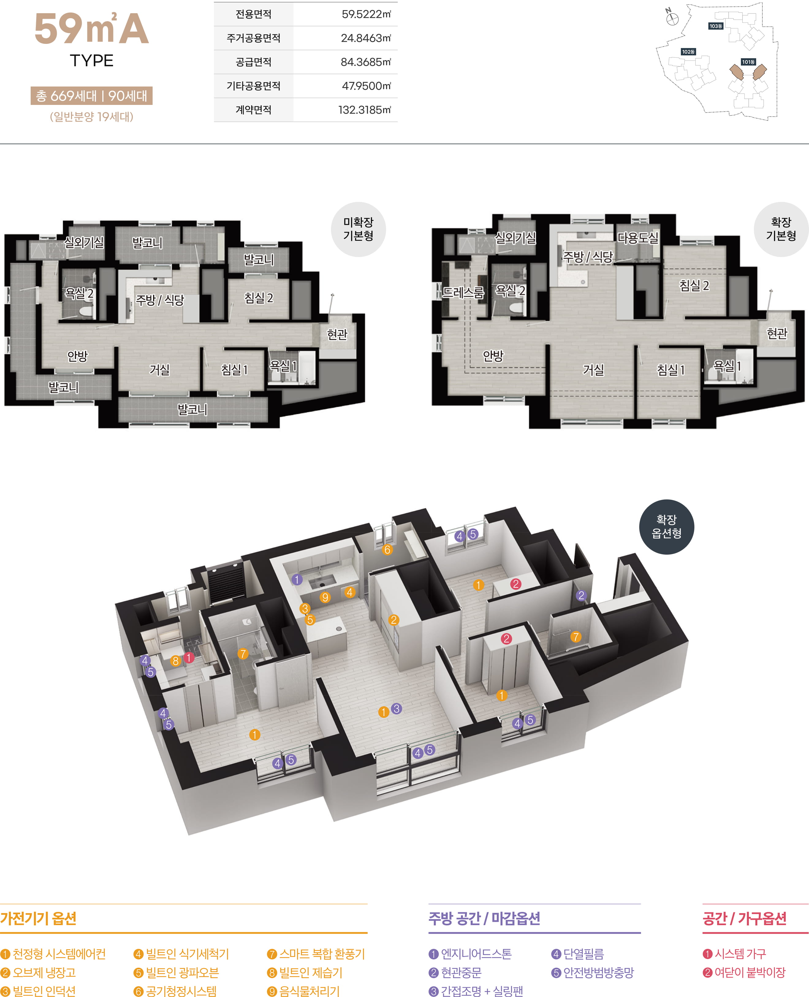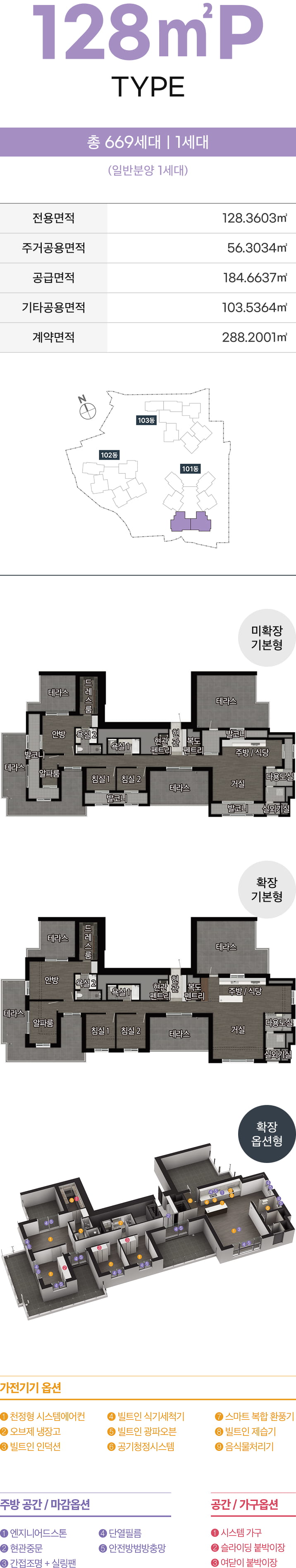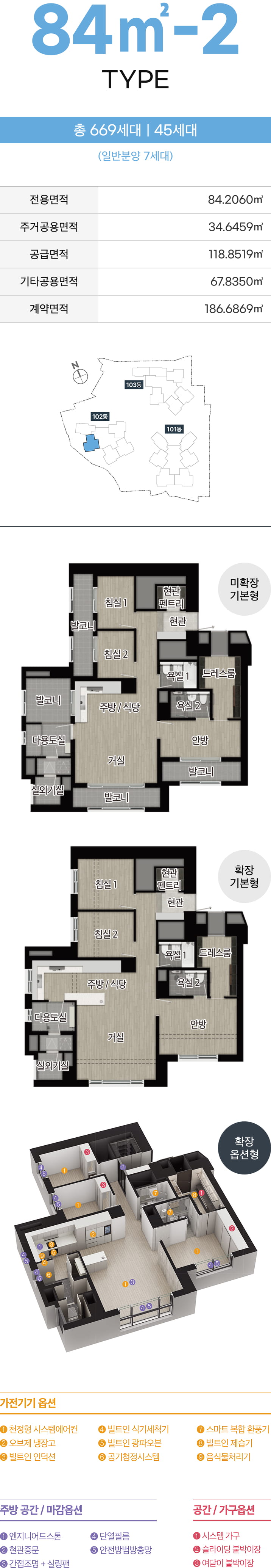 ※ 본 홈페이지상의 옵션 사항은 각 세대 타입 단위세대 마다 다를 수 있으니 자세한 사항은 견본주택에 직접 방문하셔서 상담 및 확인하시기 바랍니다.