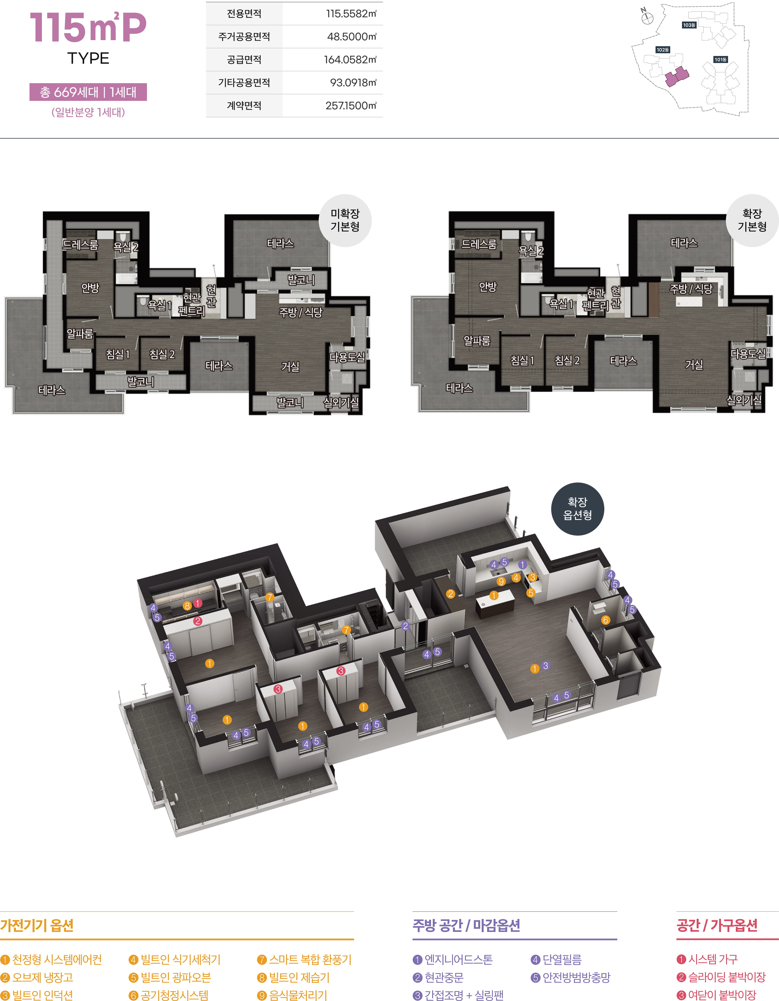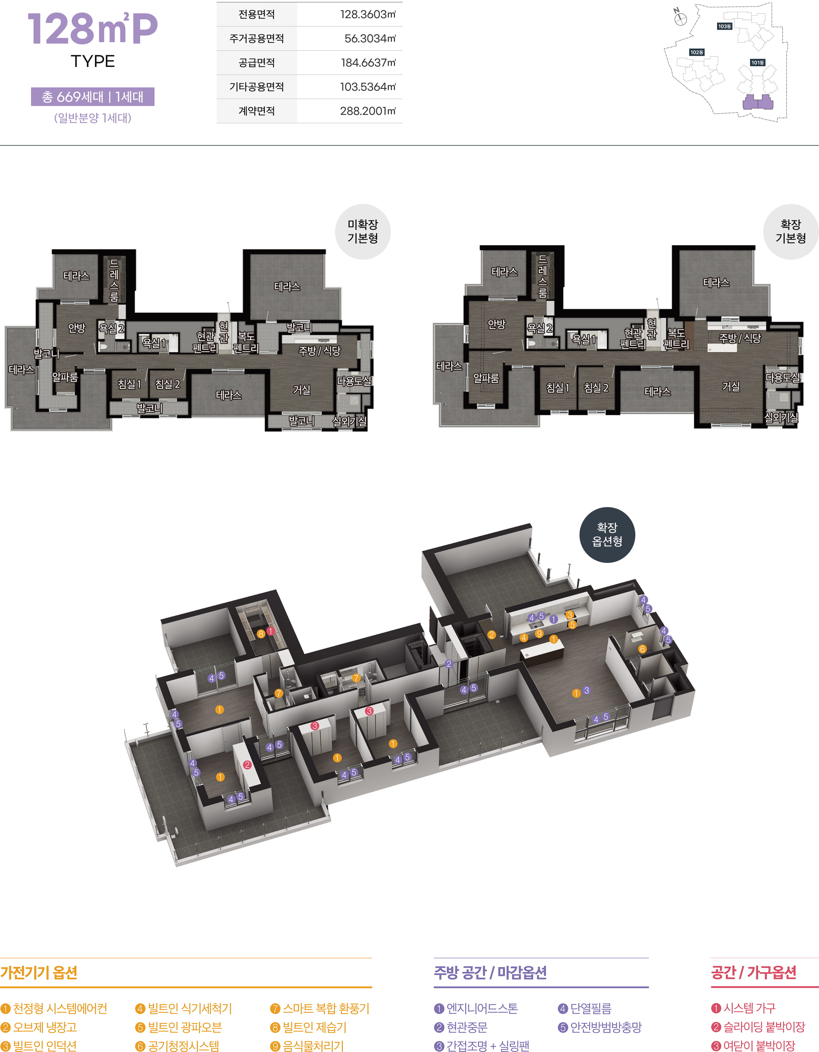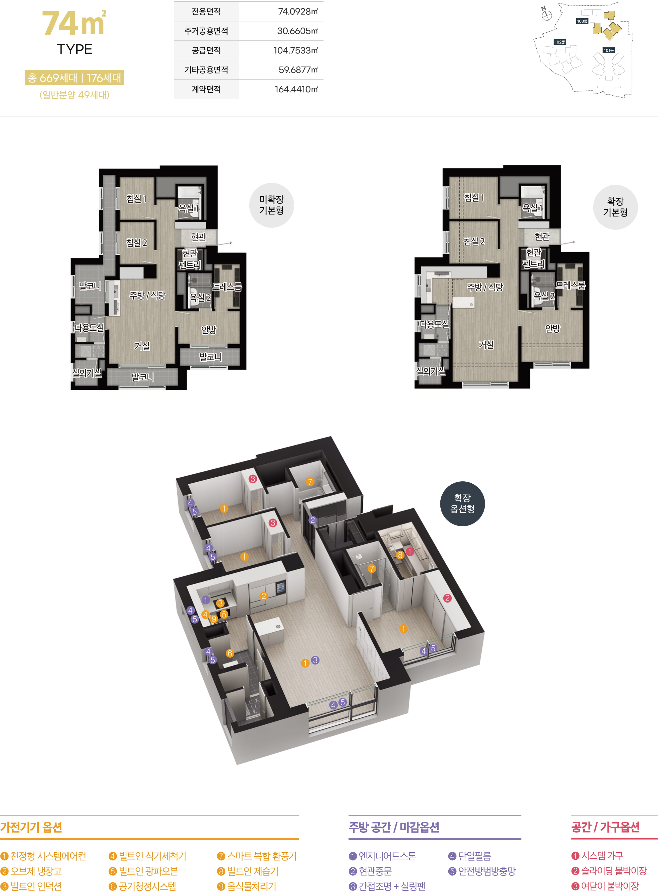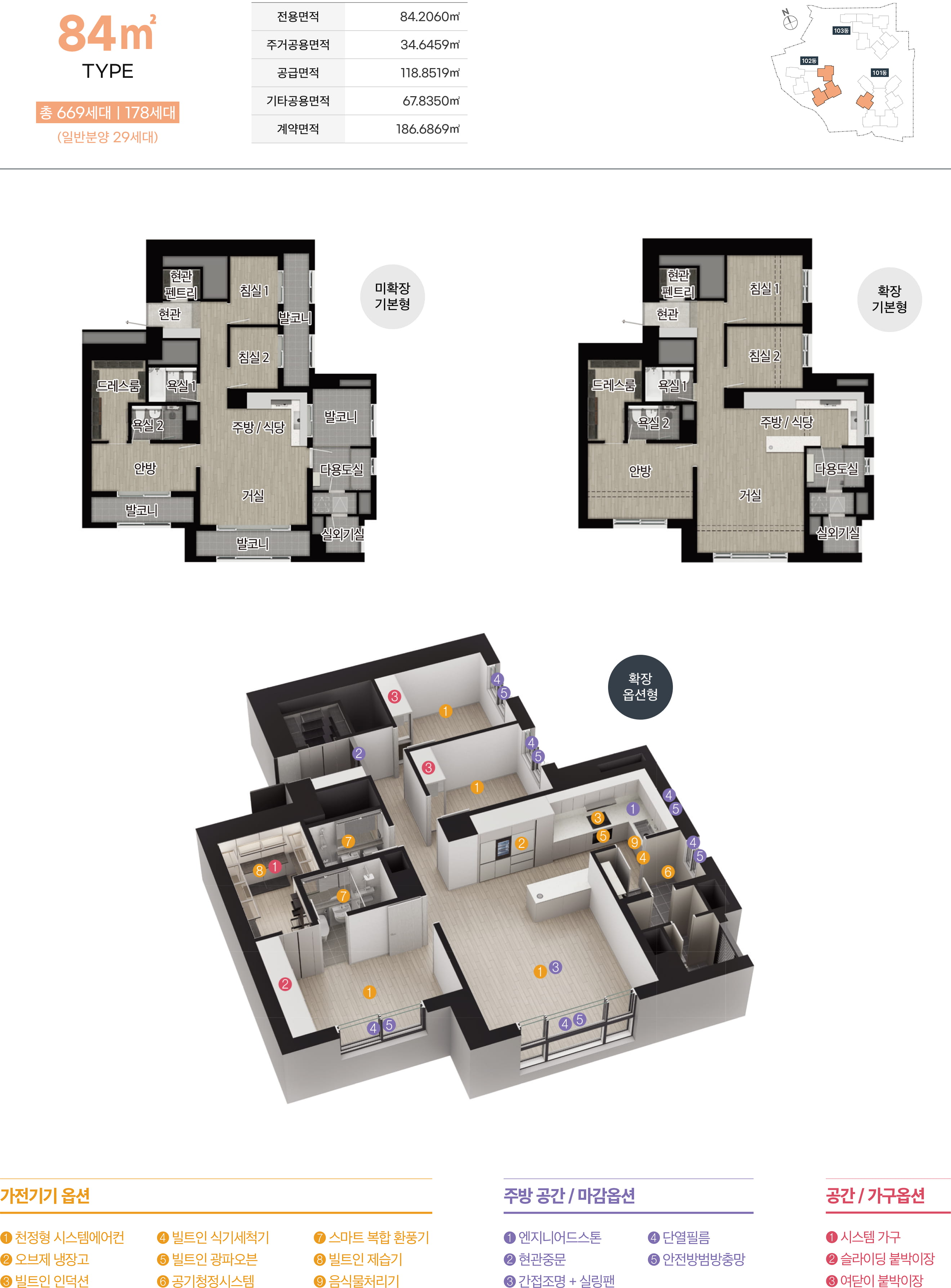 ※ 본 홈페이지상의 옵션 사항은 각 세대 타입 단위세대 마다 다를 수 있으니 자세한 사항은 견본주택에 직접 방문하셔서 상담 및 확인하시기 바랍니다.