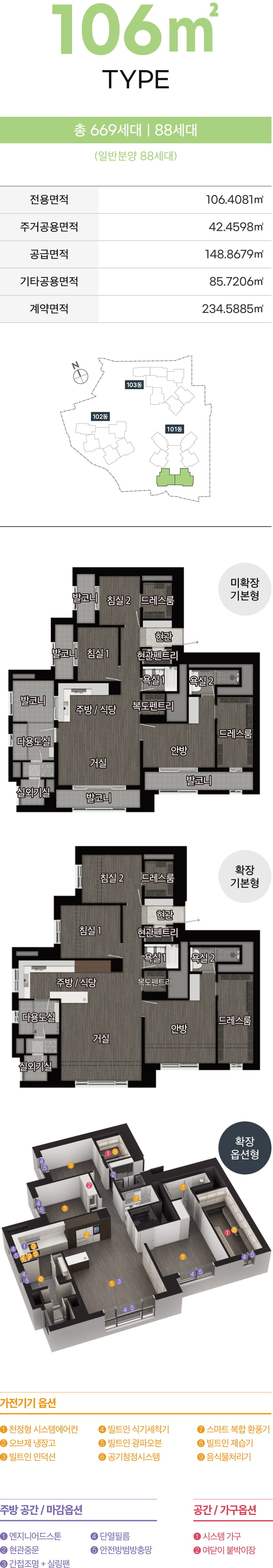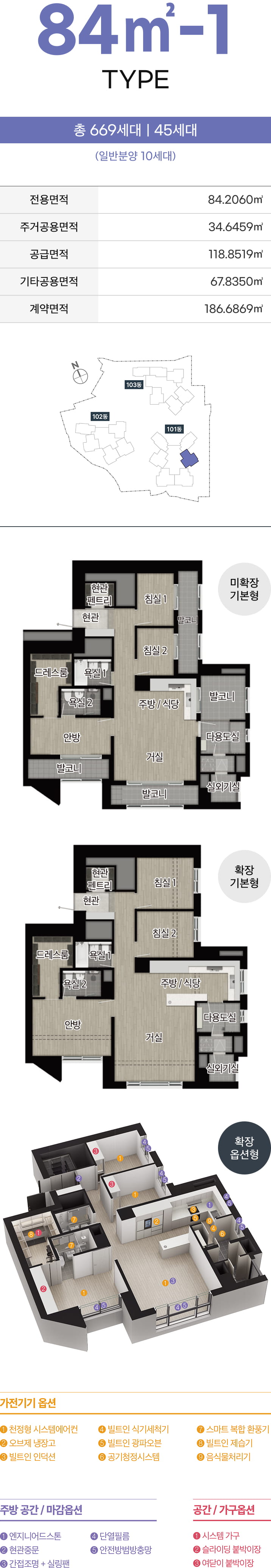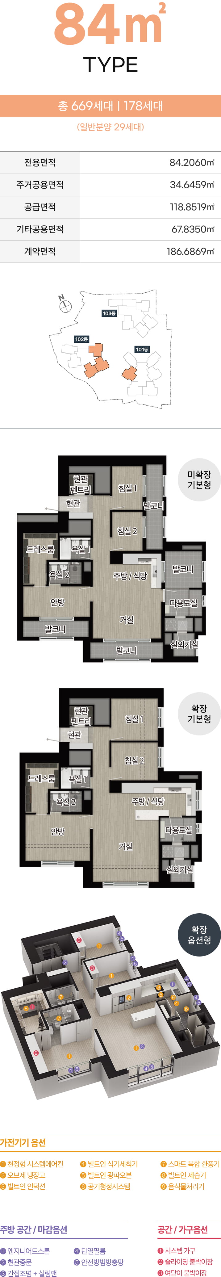 ※ 본 홈페이지상의 옵션 사항은 각 세대 타입 단위세대 마다 다를 수 있으니 자세한 사항은 견본주택에 직접 방문하셔서 상담 및 확인하시기 바랍니다.