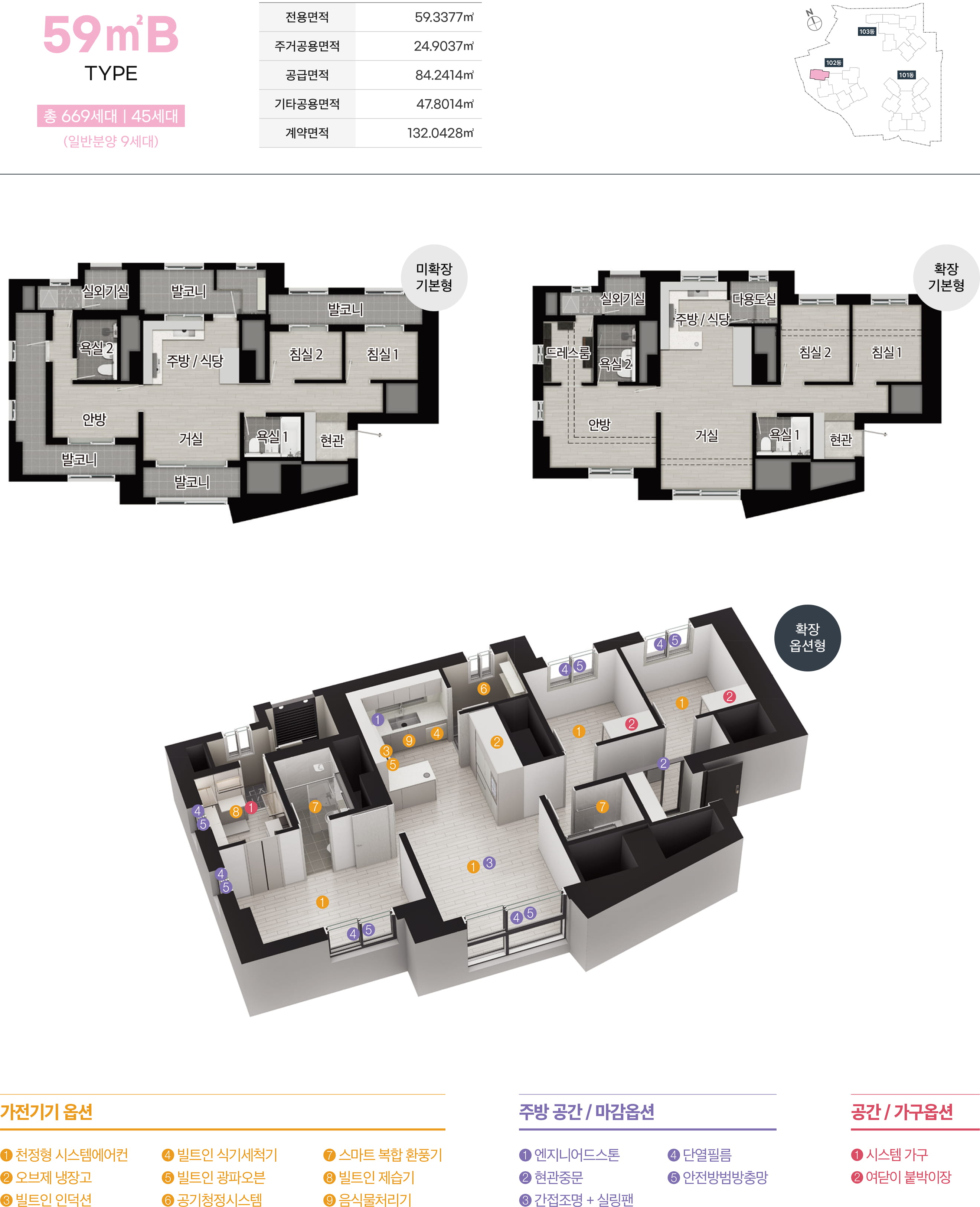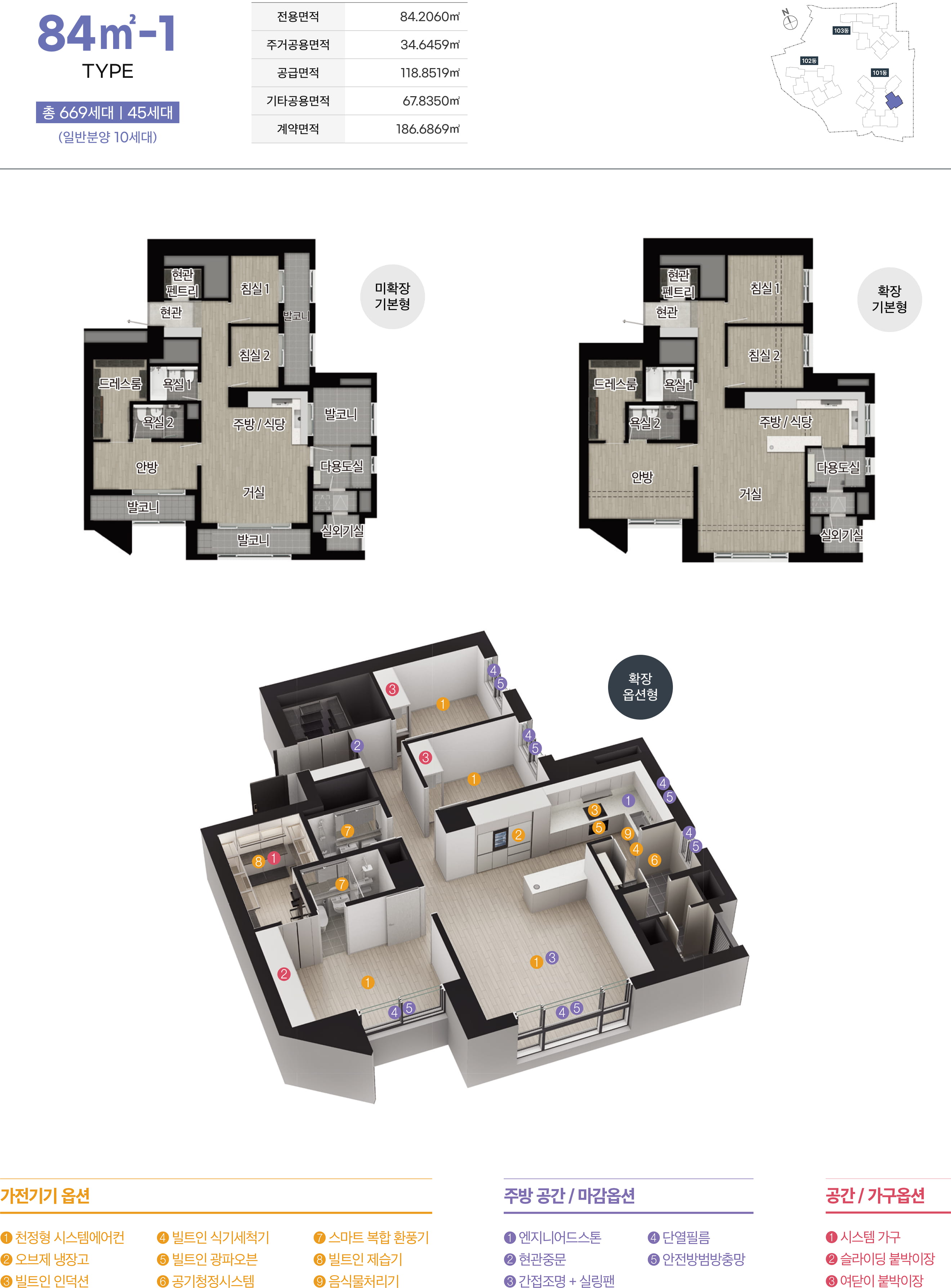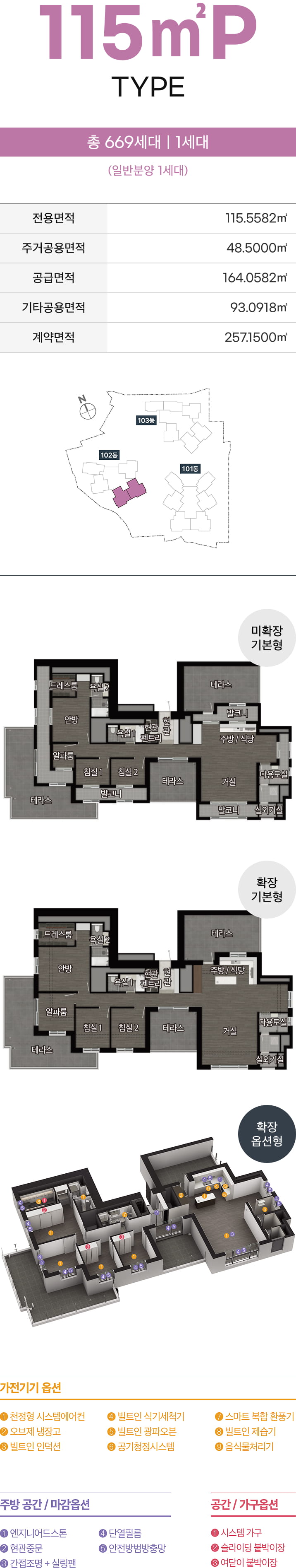 ※ 본 홈페이지상의 옵션 사항은 각 세대 타입 단위세대 마다 다를 수 있으니 자세한 사항은 견본주택에 직접 방문하셔서 상담 및 확인하시기 바랍니다.